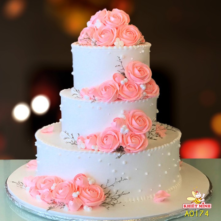 Bánh cưới, 3 tầng, màu hồng