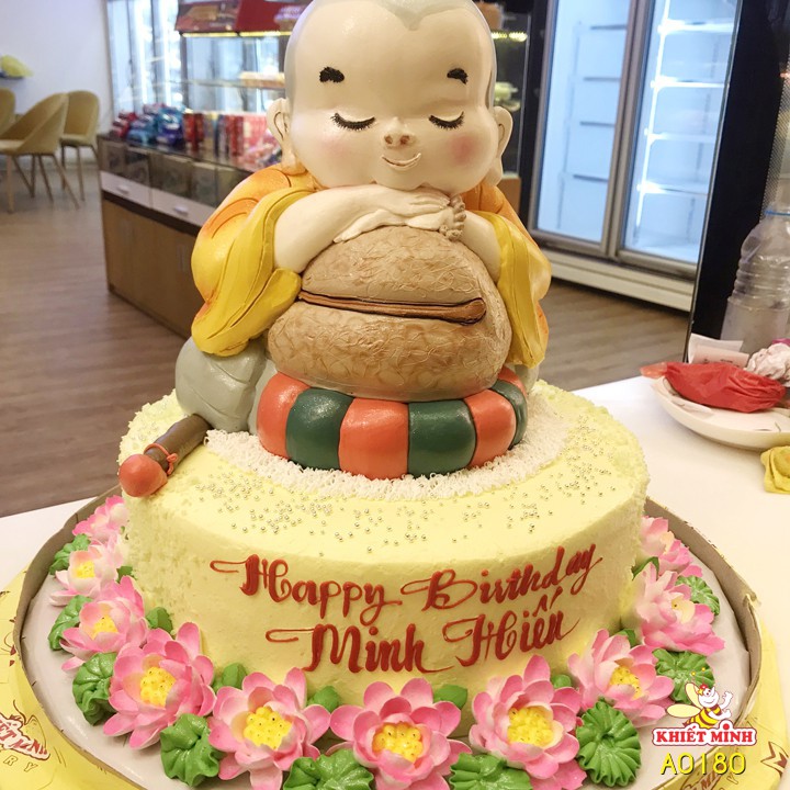 Bánh kem chú tiểu, hoa sen, màu vàng